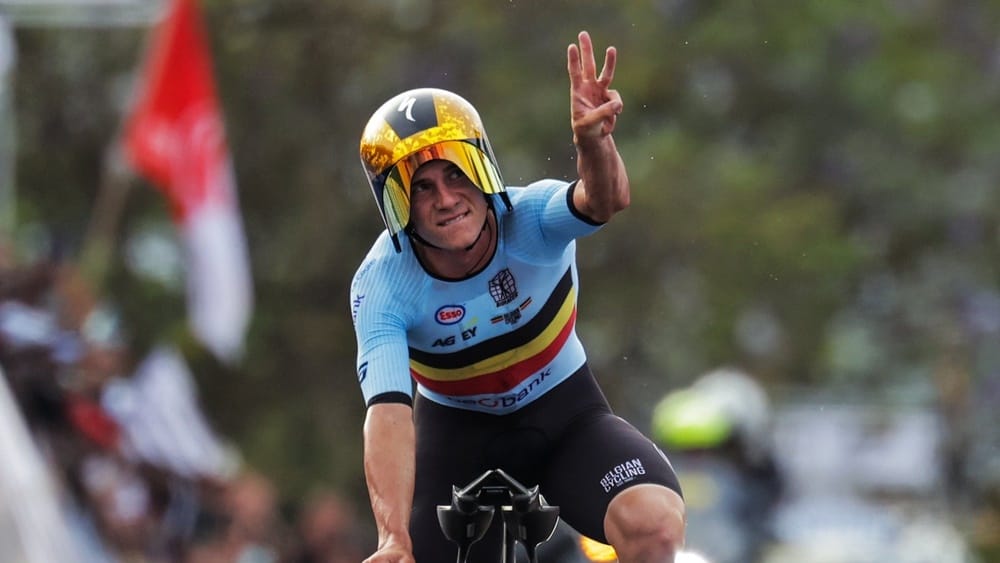 In the opening time trial of the 2025 UCI Road World Championships in Kigali (first ever in Africa), Belgium’s Remco Evenepoel proved again that he’s the master of the solo ride against the clock. He won his third consecutive elite men’s World Time Trial title over ~40 km, finishing absolutely dominant.